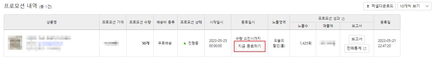 프로모션을 조기 종료하려고 한다.