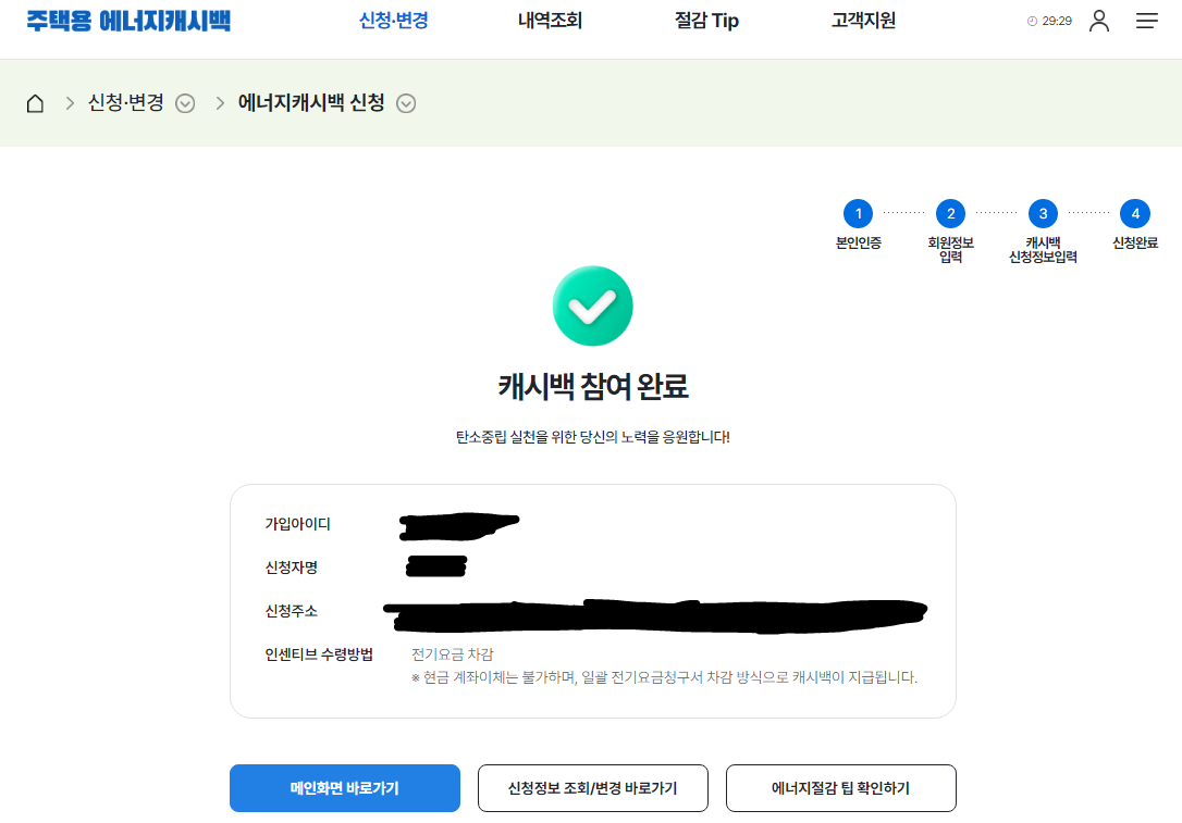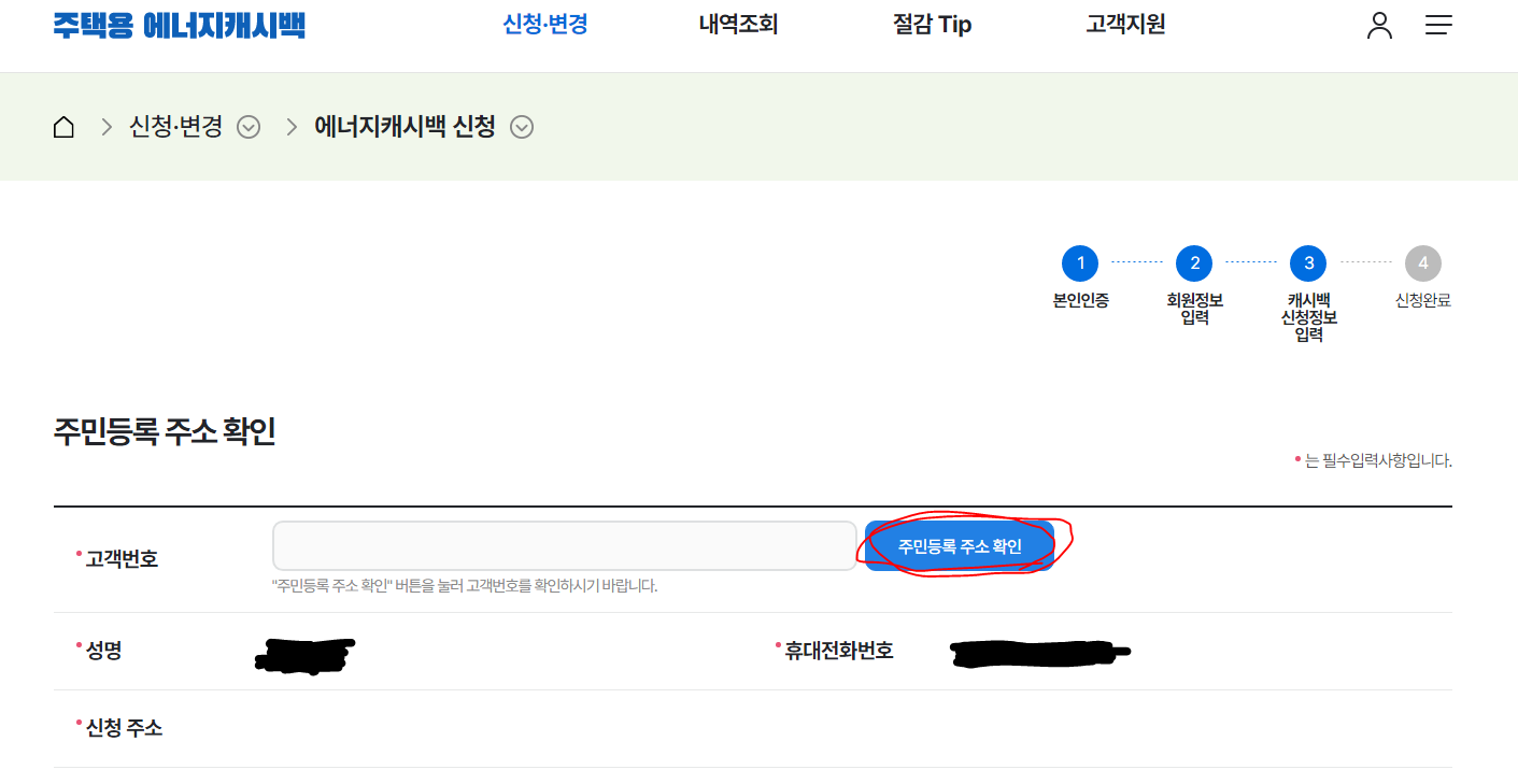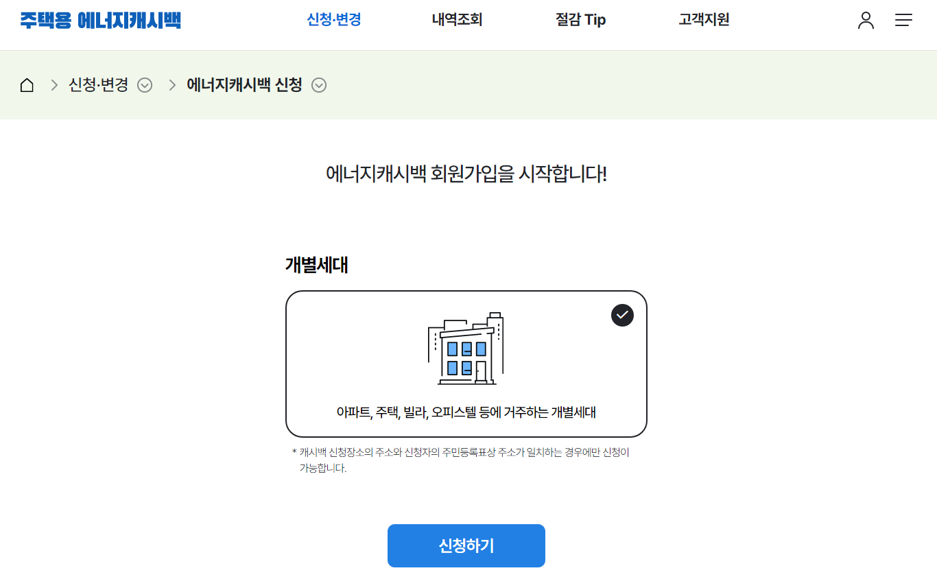 캐시백 산정기간 중 신청자의 주소지가 변경된 경우 캐시백 지급이 제외되며, 캐시백 재신청을 위해서는 변경된 주소지 기준으로 다시 신청해주셔야 합니다.