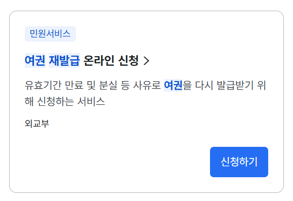 여권 재발급 검색
