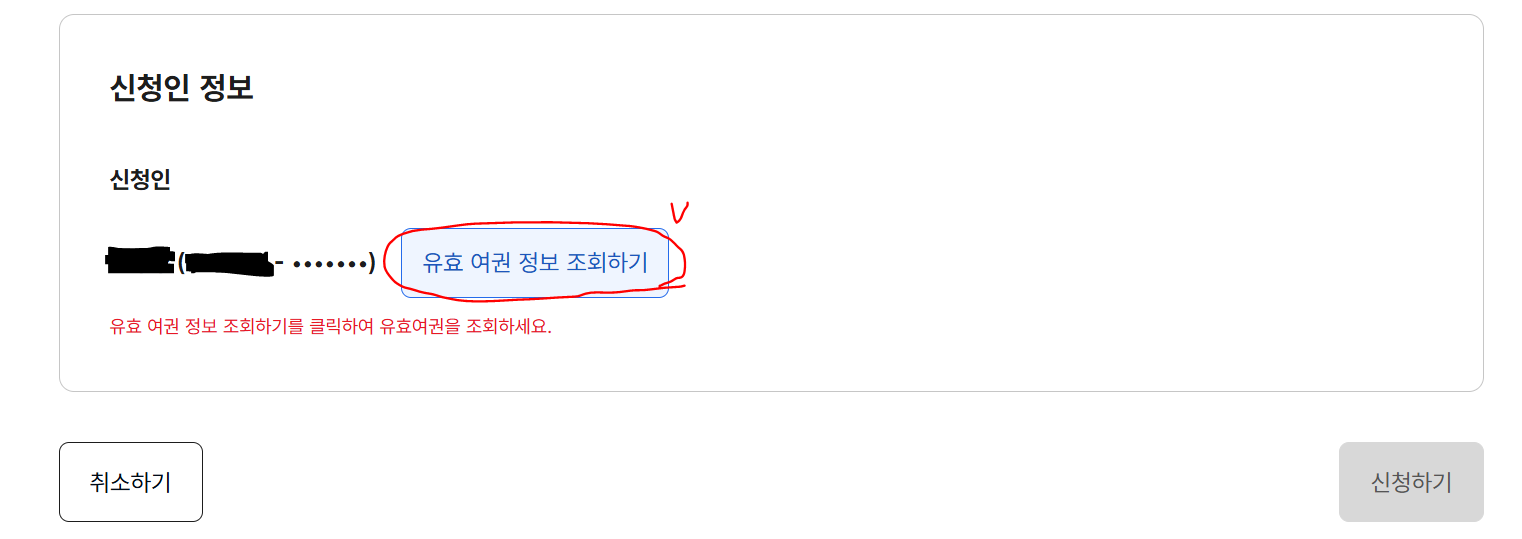 유효 여권 정보 조회하기를 클릭해서 일단 조회해야한다.